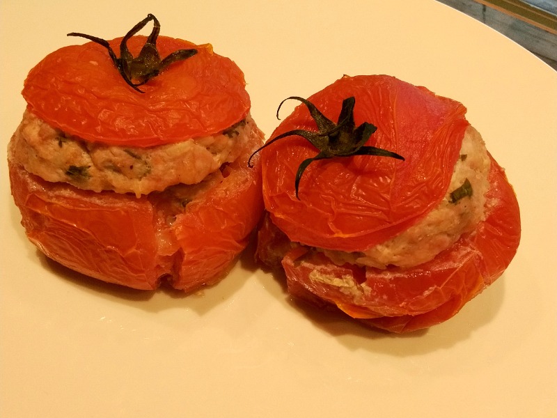 Aubergine farcie a la viande hachée, sauce tomate, basilic, parmesan et mozzarella.